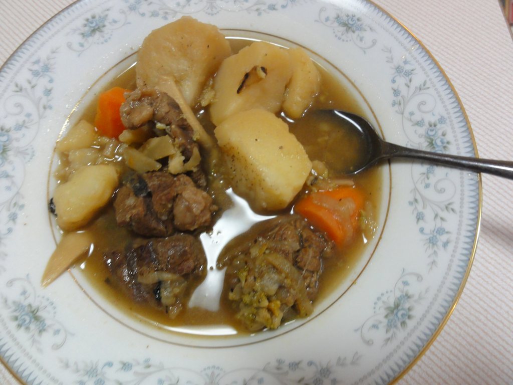 ビーフシチュー残り ジャガイモ、青梗菜、香菜追加 PR |